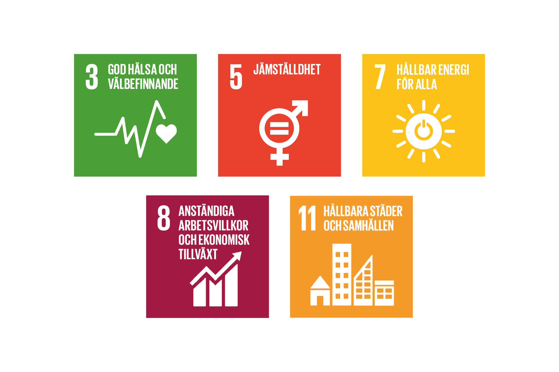 Med utgångspunkt från fem prioriterade mål av FNs sammanlagt 17 globala mål är flera fokusområden, så kallade väsentliga hållbarhetsfrågor, vägledande för Pulsen Groups hållbarhetsarbete. Dessa är: