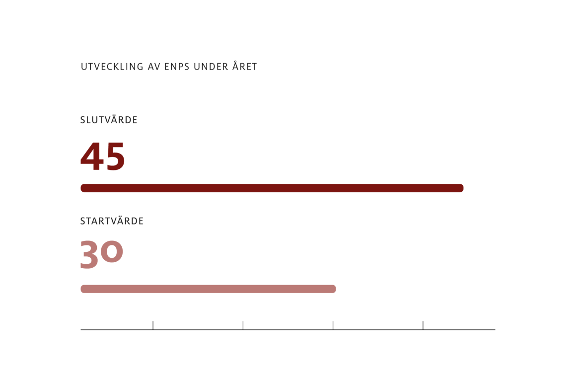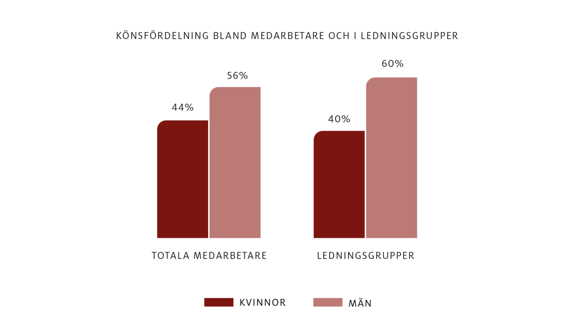 Pulsen Group har 1 870 medarbetare, varav 44 % är kvinnor. I ledningsgrupperna är andelen kvinnor 40 %. Våra kvartalsvisa medarbetarundersökningar visar att engagemanget ökar – eNPS har stigit från 30 till 45, vilket är ett utmärkt resultat. Det visar att fler medarbetare rekommenderar sin arbetsgivare. Vi följer upp och agerar på insikter för att stärka arbetsmiljön och trivseln.